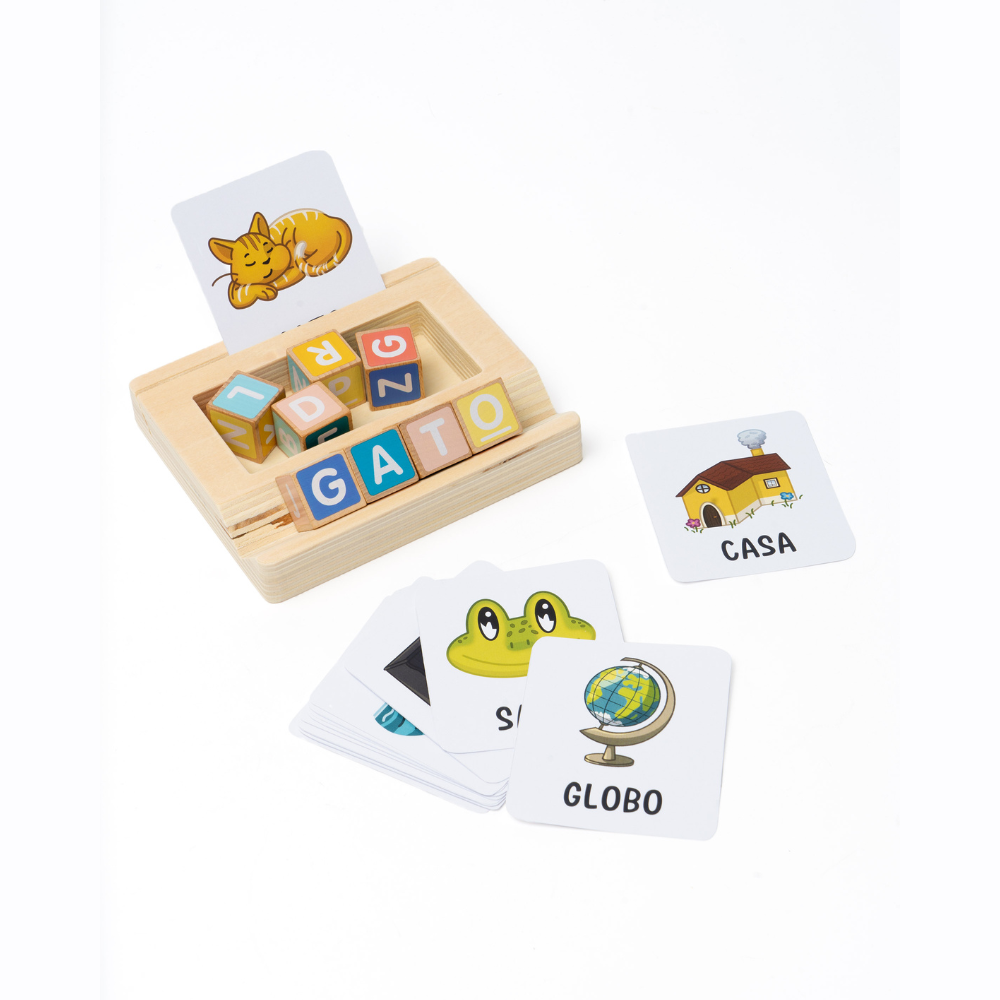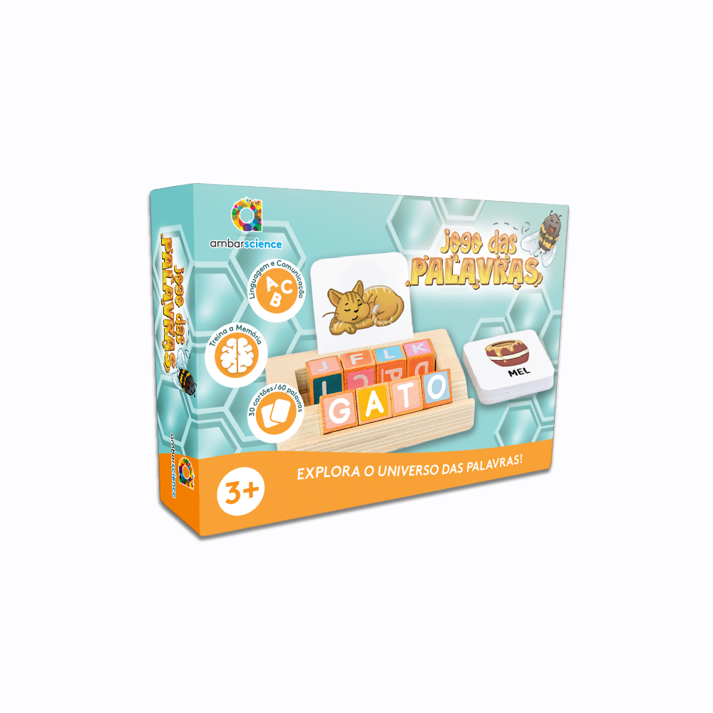 AMBARSCIENCE Educational Game "Word Game" in Wood, language, communication and memory training for young children. Developed especially for preschool children (ages 3+), this educational game encourages the association between images and words, helping children learn spelling, improve memory, and expand their vocabulary in a fun and interactive way. Made from natural wood and FSC™ certified. Playing is the best way for children to explore and learn about the world.